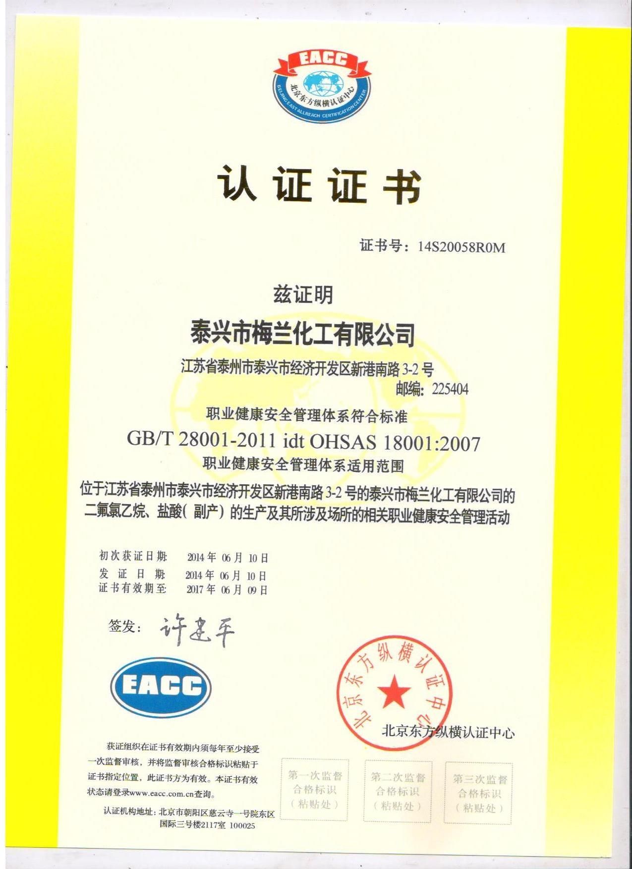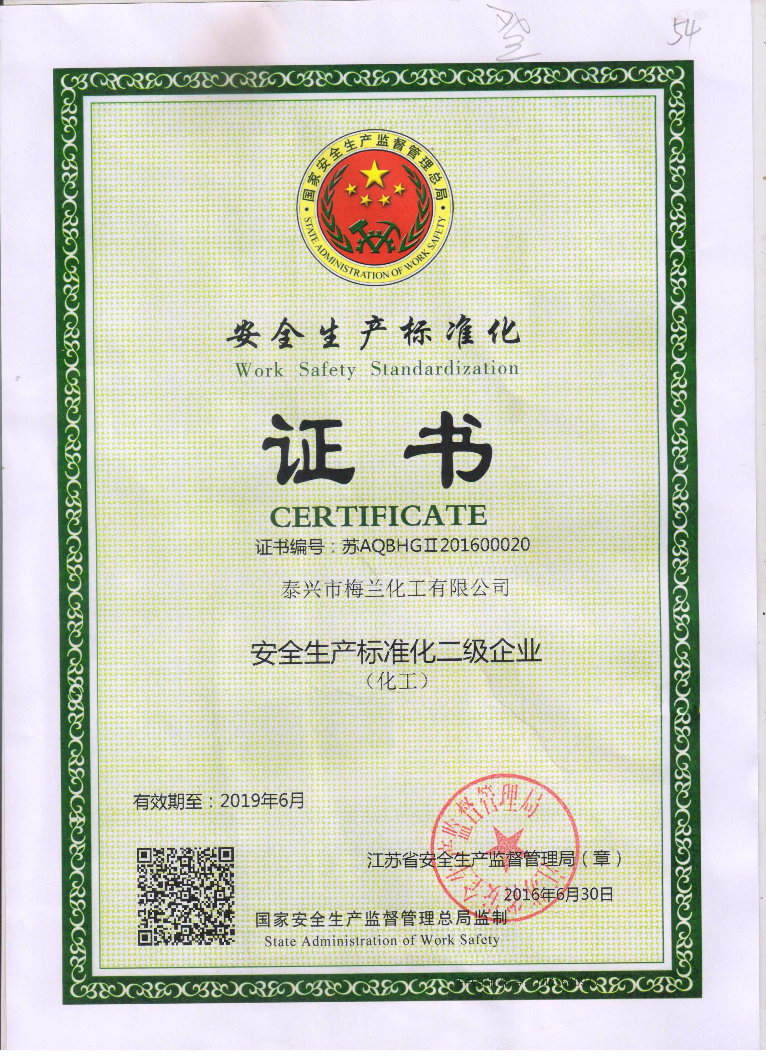 泰兴市梅兰化工有限公司 >> 关于我们 >> 公司荣誉
